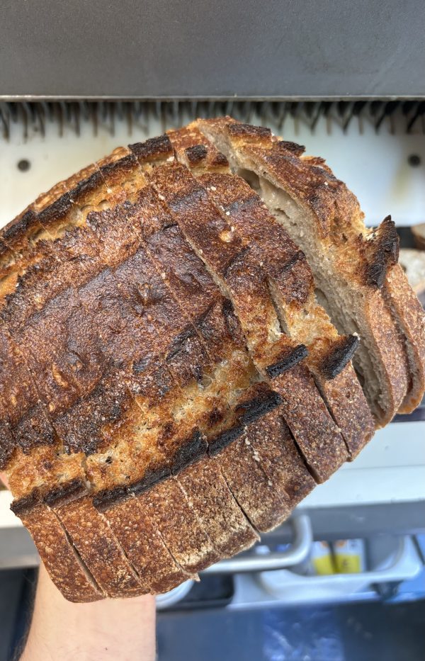 Our take on a cupboard staple, sliced bread. Slowly fermented using a blend of stoneground flours, it’s not your usual sliced bread. Long lasting and ideal for a sandwich but without all the additives and processing.